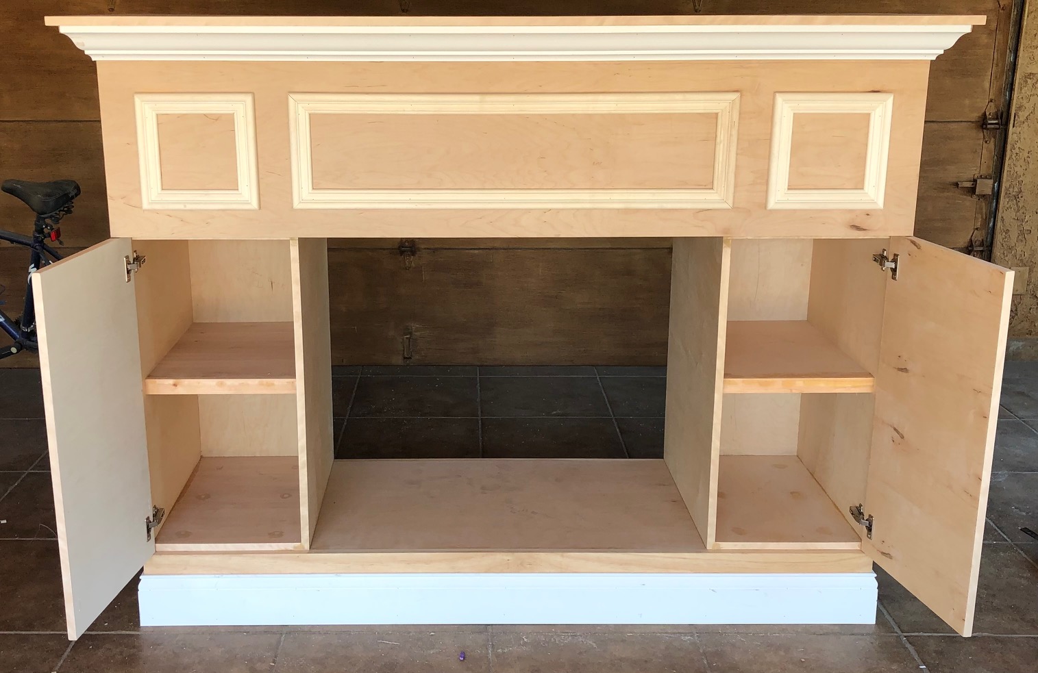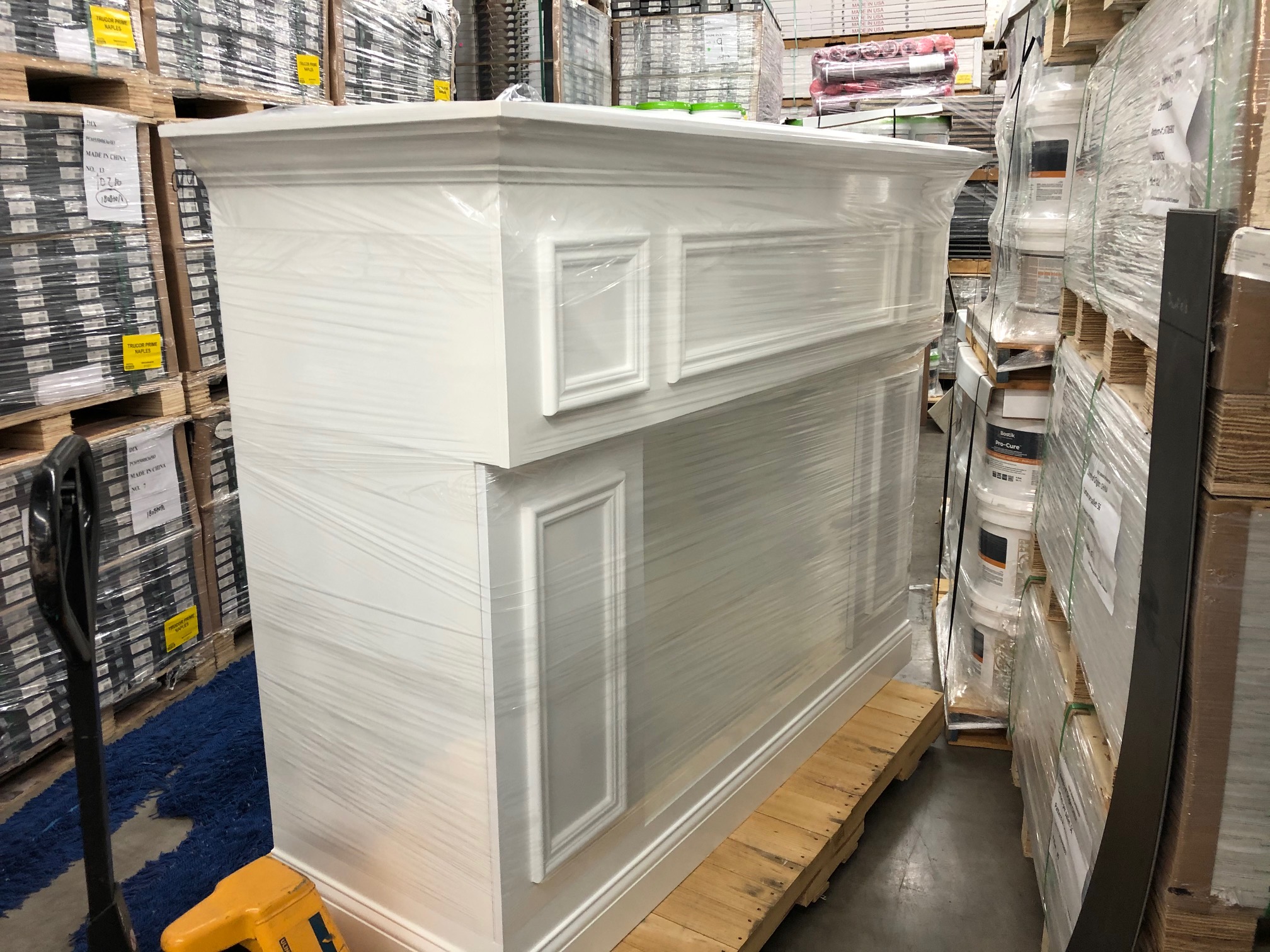 Measuring 65 inches tall and 72 inches wide, this handcrafted faux fireplace is designed to bring elegance and charm to any room without the need for an actual chimney or firebox. Its classic design features detailed woodwork and a clean, white finish, making it a perfect fit for a variety of decor styles, from rustic farmhouse to modern chic.
